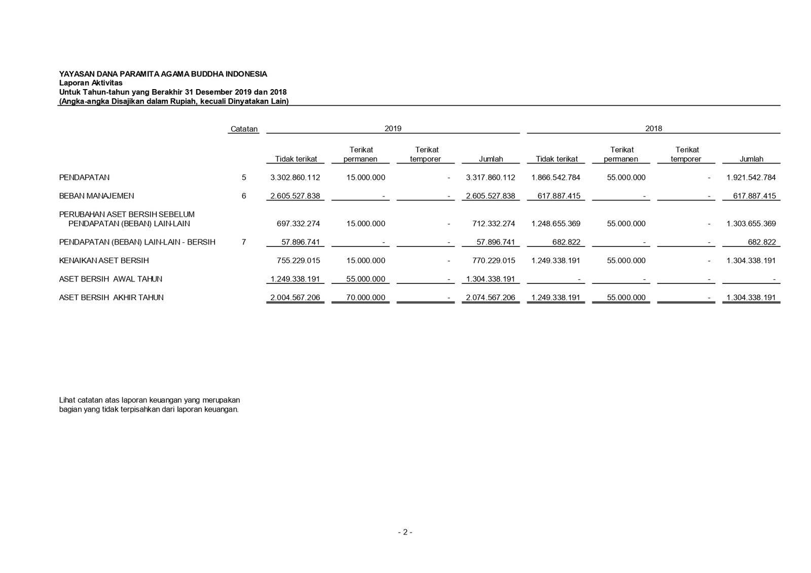 Laporan audit - LAPORAN AUDIT YAYASAN DANA PARAMITA AGAMA BUDDHA INDONESIA TAHUN 2019